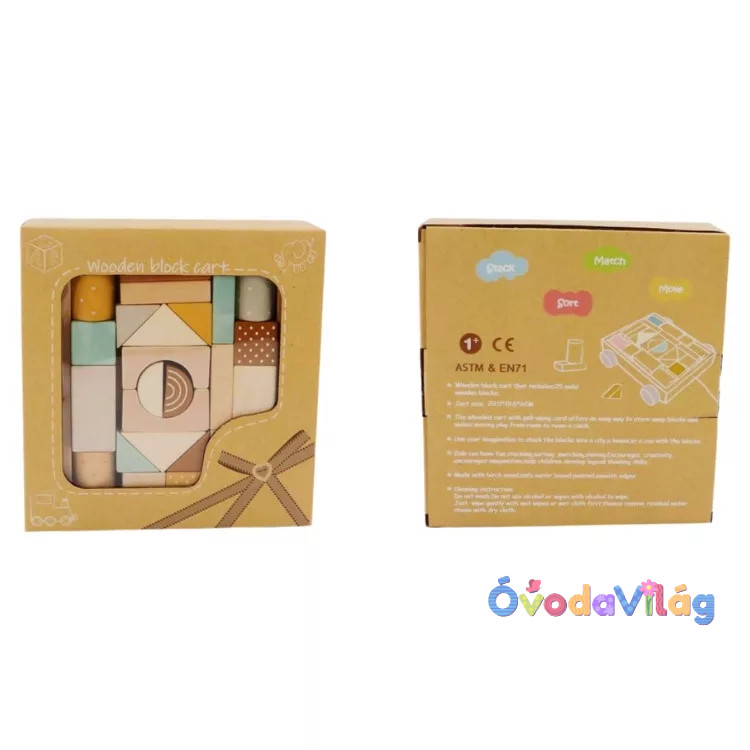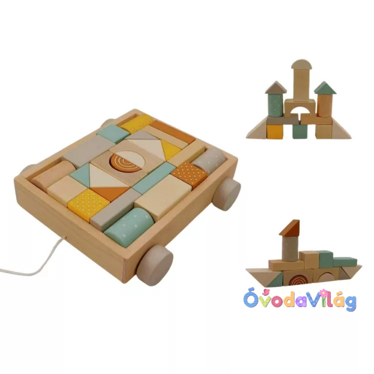 A 25 darabos építőkocka kiskocsiban (8826) egy színes, strapabíró készségfejlesztő játék, amely kombinálja az építés és a húzós kocsi élményét. Segíti a gyermek kreativitását, térlátását és finommotoros fejlődését. Már 1 éves kortól ajánlott.