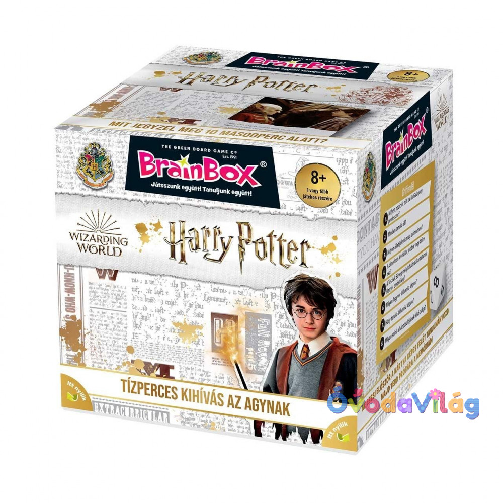 Brainbox Harry Potter társasjáték remek agytorna és szórakozás, egy vagy akár több játékos részére! Jegyezz meg minél több információt 10 másodperc alatt a kihúzott kártyán szereplő országról, majd dobj a kockával és válaszolj helyesen a kidobott szám szerinti kérdésre. De ne húzd az időt, mert a homokórán gyorsan leszaladnak a szemek! A válaszokat a kártyán ellenőrizheted. Ha jó megfigyelő vagy, akkor a legtöbb kártya nálad landol, így te leszel a nyerő!