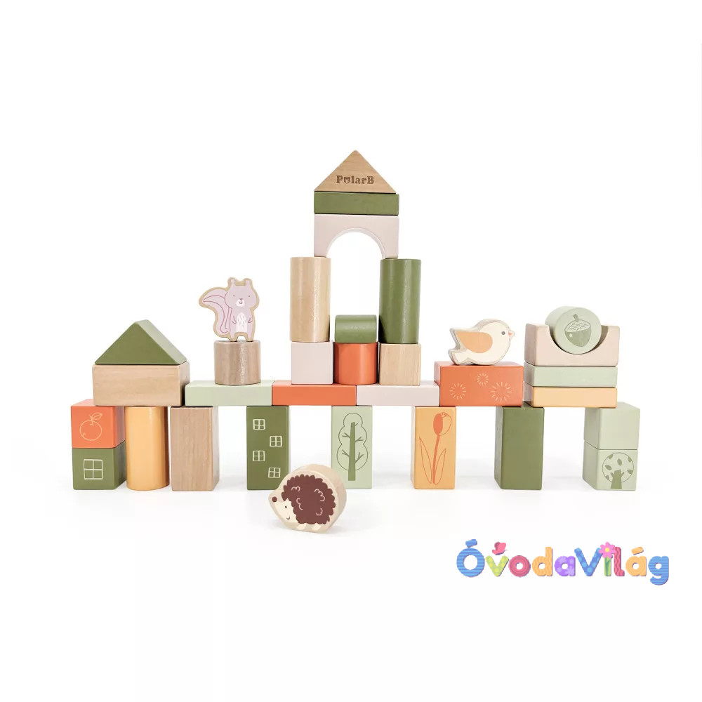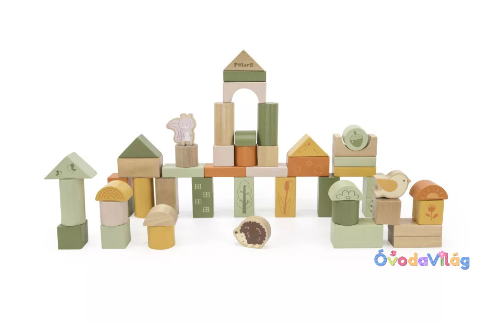 A PolarB 50 db-os építőkocka (9386) bájos pasztellszíneivel és változatos formáival fejleszti a gyermek kreativitását, kézügyességét és fantáziáját. A minőségi fa elemek biztonságosak, tartósak és ideálisak otthoni vagy óvodai használatra.