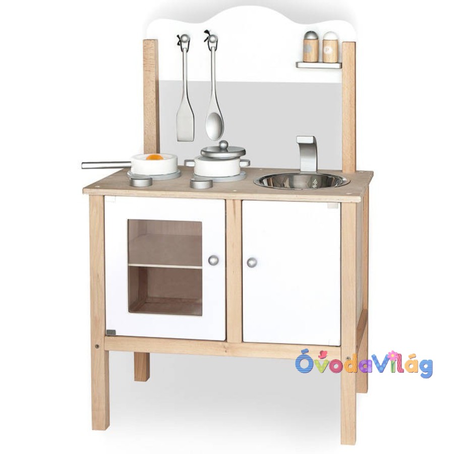 Játékkonyha fából fehér kezdődhet a sütés és a főzés, hisz ebbe a játékkonyhában minden megtalálható ami a főzéshez szükséges. Hívd át kis barátaidat és süssetek vagy főzzetek valami finomat. Ha a főzéssel megvagytok, mosogassatok el, pont úgy ahogy anyu is szokta. Igazi utánozós játék, ami nem hiányozhat a gyermekek játéktárából.